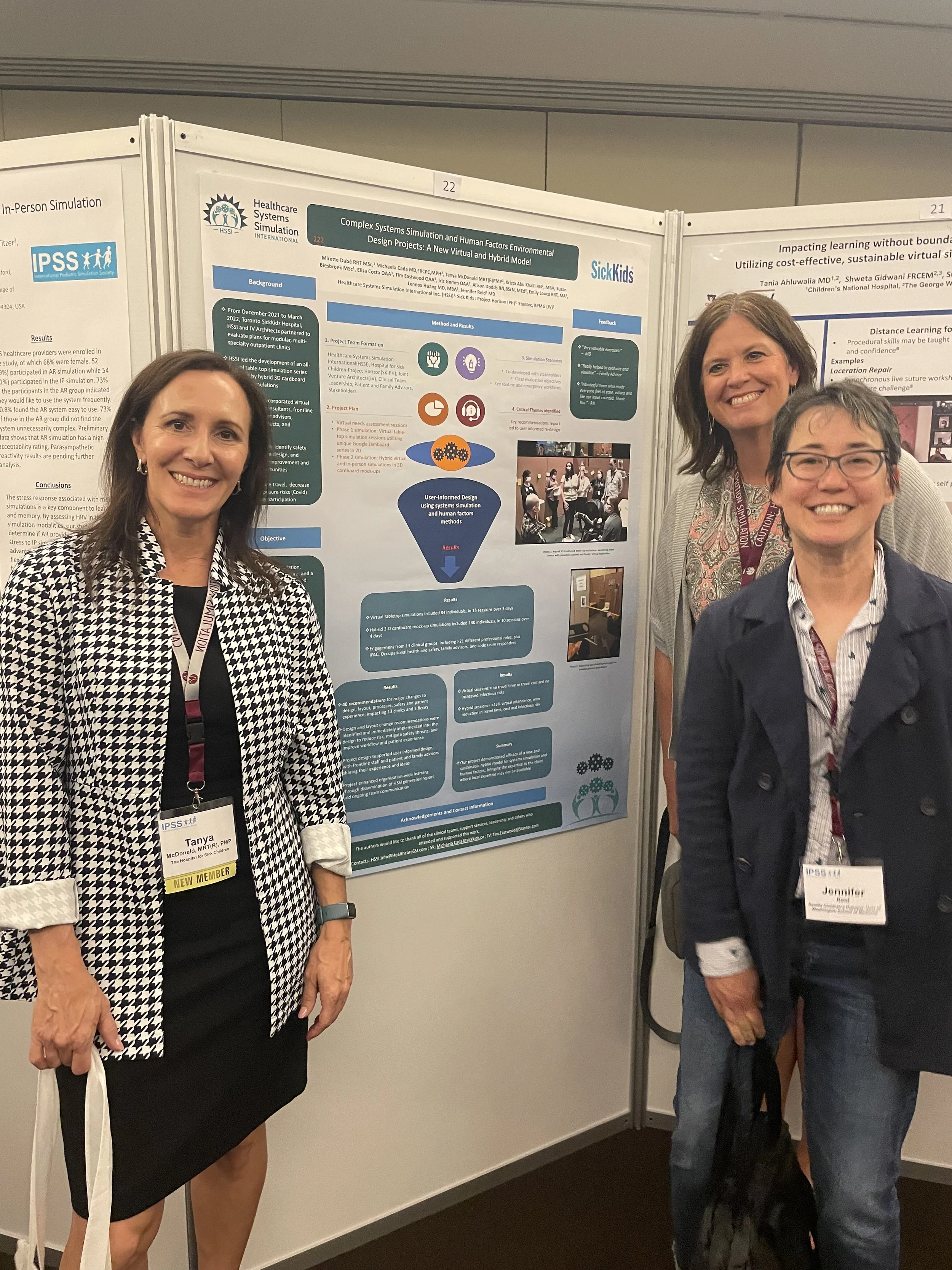 Mirette Dubé and Dr. Jennifer Reid from HSSI presenting at the IPSSW Conference in 2024 on their work with Toronto Sick Kids Hospital in Toronto, Canada. The presentation was highlighting work completed on simulation-based mockup evaluations and schematic design evaluations of floor plans for hospital builds.